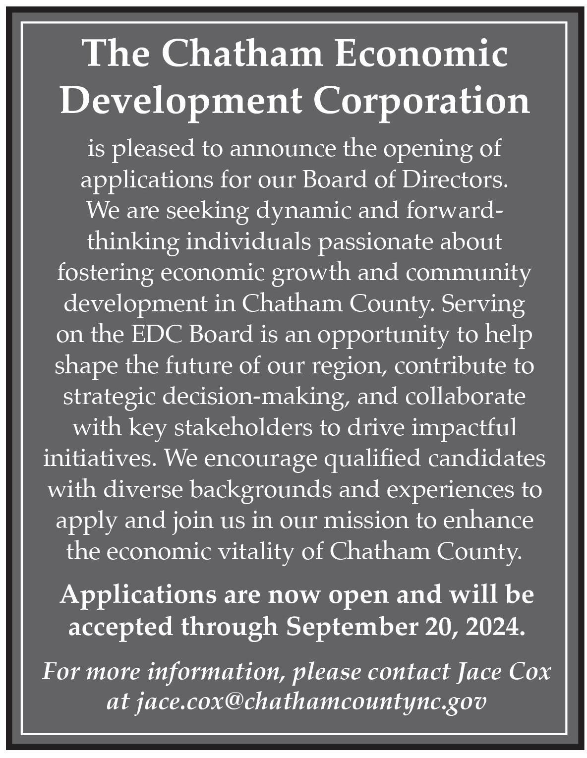 After a pilot period, the NC Tri-Share child care program has launched in Chatham County. Designed to help families deal with the high cost of child care, the Tri-Share program was funded by the General Assembly last year. It’s a public and private partnership that splits the cost of child care equally between employers, employees and the state. To qualify, a family member must be employed by a participating business, have a household income between 185% and 300% of the federal poverty level, and be ineligible for other child care subsidies. To apply or learn more, visit pfcfmc.org