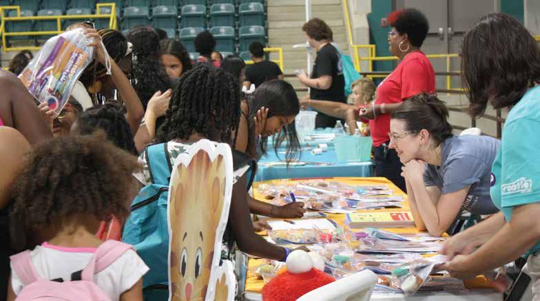 Crowds gathered at the Duplin Event Center on Saturday for a fun- lled day. Families picked up backpacks sorted by grade and then explored vendor booths o ering giveaways and services. Kids enjoyed face painting, balloon animals and bounce houses, while volunteers served up delicious treats. Outside, the fun continued with in atable slides, axe throwing, roller ball and a dunking booth. See more photos on B6.