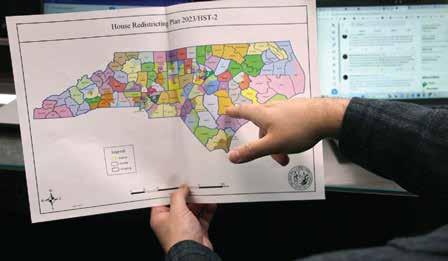 The North Carolina state House reviews copies of a map proposal for new state House districts during a committee hearing at the Legislative O ce Building in Raleigh, N.C., Thursday, Oct. 19, 2023.