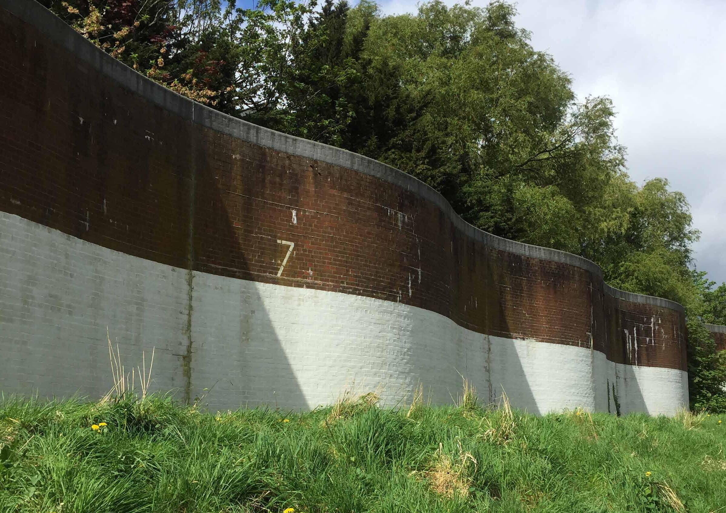 The ‘crinkle crankle’ wall that surrounded part of the Holloway Prison perimeter, One of the few modern examples of this construction technique, it was demolished with the rest of the prison in 2023.