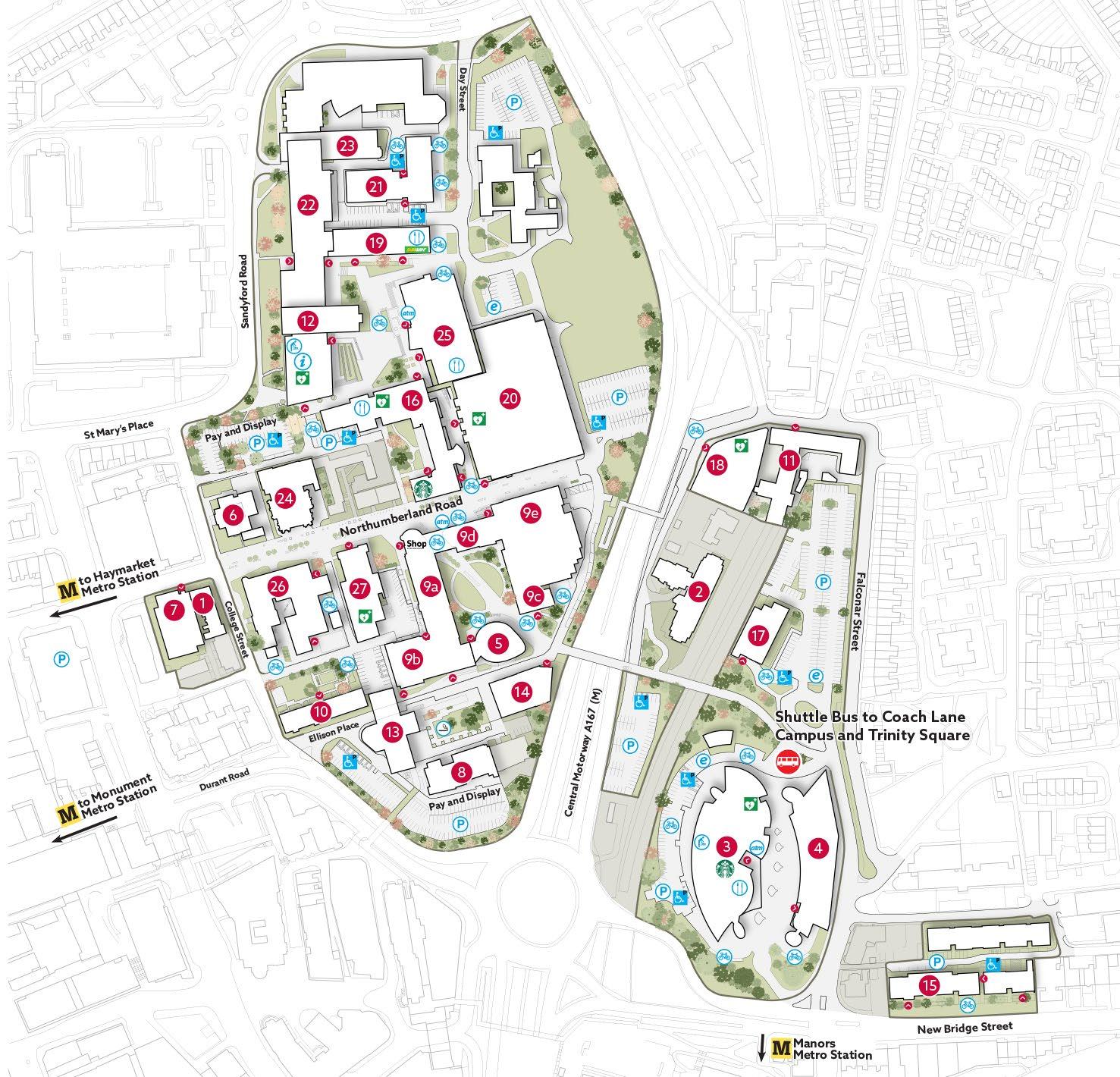 You can travel from City Campus to Coach Lane Campus and Trinity Square accommodation free of charge on our shuttle bus on the day. Buses depart from City Campus East (see on the map on page 8) between 08.30 and 15.30 every 20 -30 minutes.