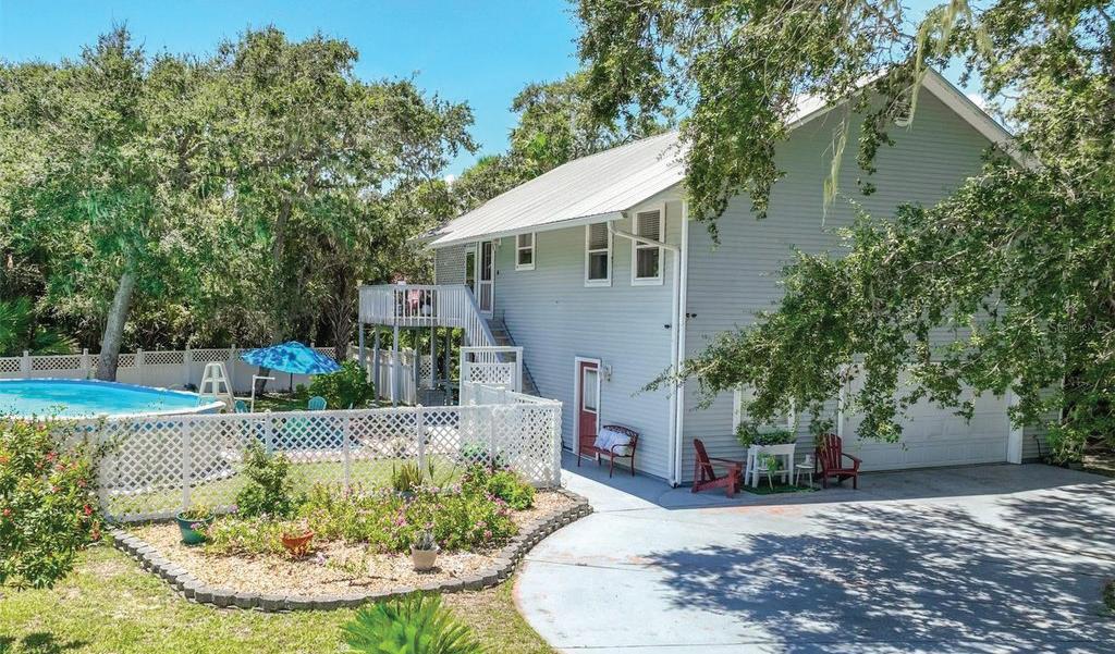 Enjoy private beach access and a covered dock on the Intracoastal Waterway. This two-story home features two master suites, a spiral staircase, and an open-concept upstairs with wood floors. The kitchen boasts granite countertops and a center island. Outside, relax by your 18x36 above-ground pool in a completely fenced yard. The oversized garage offers workshop potential. The possibilities are endless. FC311835 $657,900