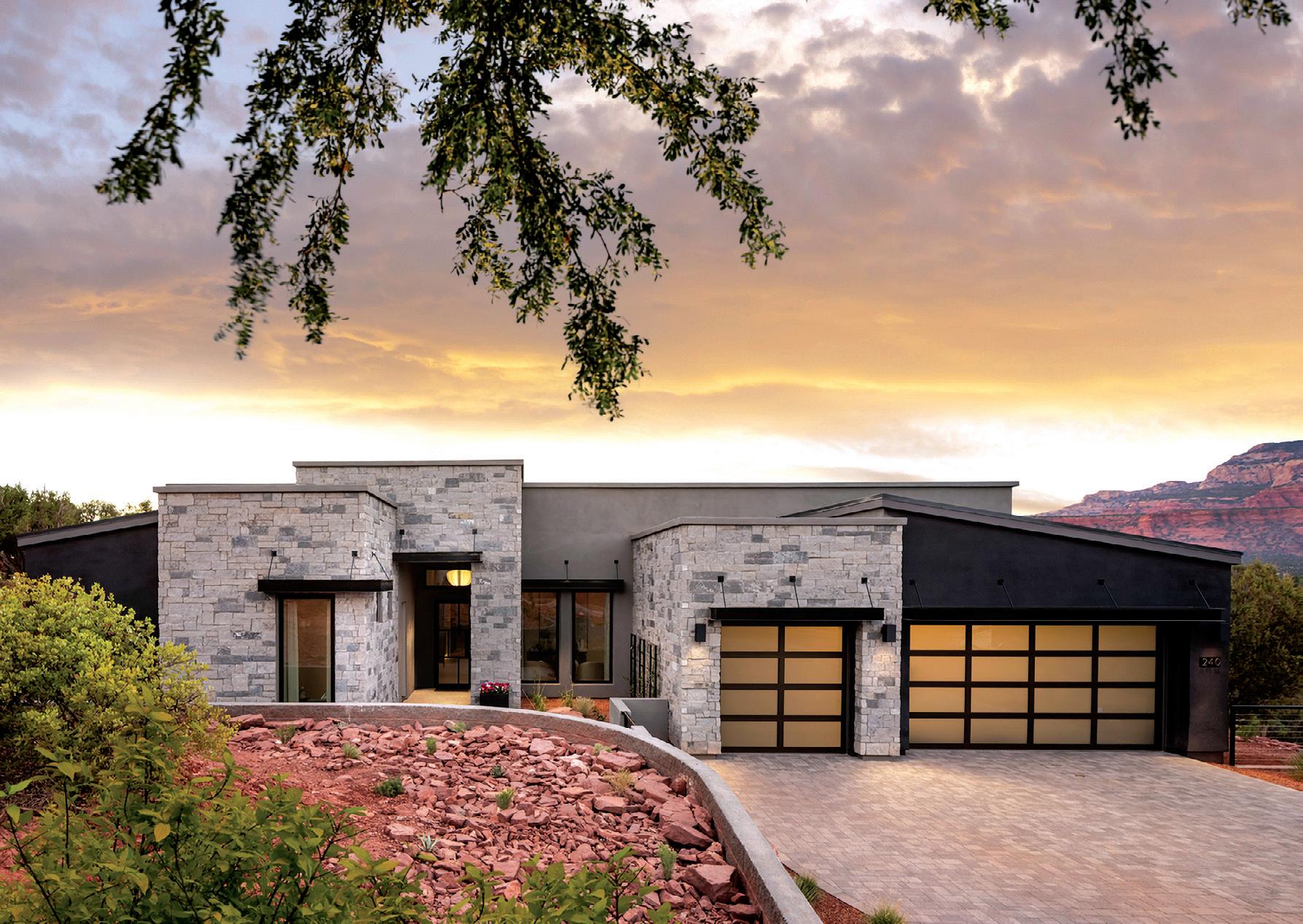 New Modern custom home with knockout views, uberefficient green features and bespoke design aesthetic. Central West Sedona location near National Forest trail access and all city amenities - this standout Dwell Well home is built to exacting standards for efficiency without sacrificing the contemporary design. Western red cedar siding, synthetic stucco and natural stone cover the exterior of this low maintenance home. Massive great room with red rock views flows into the oversized kitchen with waterfall edge white quartz countertops. Dual primary suites. NO HOA.