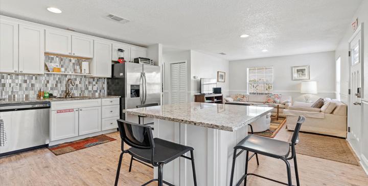 Bright, spacious, and built to last in flood zone X! From the moment you step inside of this 3 bed 2 bath stunner, you're greeted by soaring vaulted ceilings and a flood of natural light that enhances the expansive, gorgeous kitchen –truly the heart of the home!
