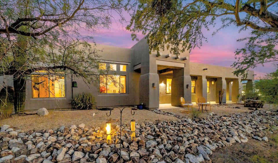 TANQUE VERDE VALLEY – This burnt adobe ranch-style home, on 4.22 acres of pristine Sonoran Desert, includes a 100-year-old cowboy bunkhouse, now serving as a guest house. $825,000