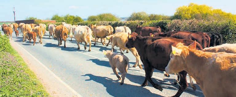Cattle hit the road on a traditional Gypsy Day move; while livestock trucks are more commonly used today, the image of the mobile farmstead remains in the popular imagination