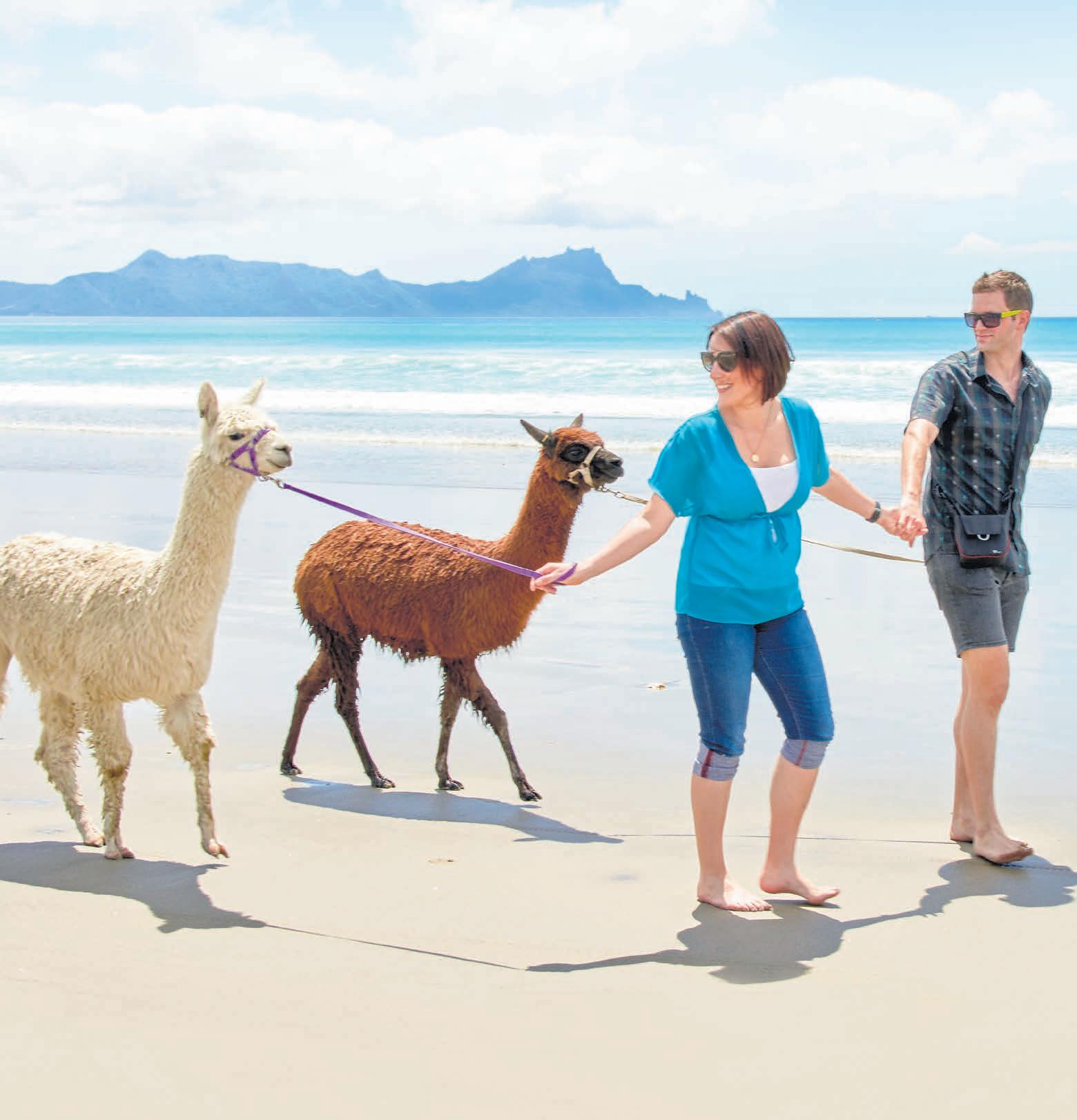 Pav and Mark Stacey delight in sharing the experience of interacting with their herd of alpaca with visitors to their farm stay based in the hills near Waipū.