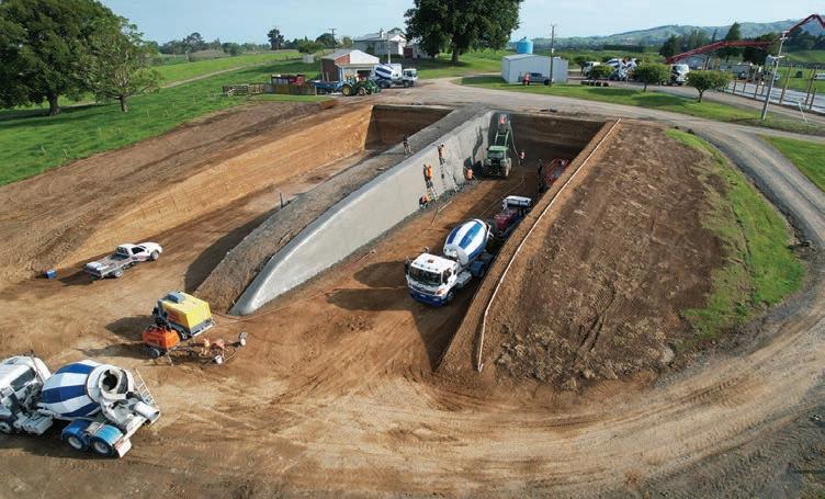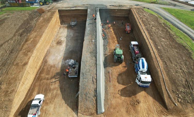 We use a 30mpa special shotcrete mix with stealth fibres and we use 668 reinforcing mesh, using these products give a strong hard-wearing finish that can handle a beating by the tractor bucket.