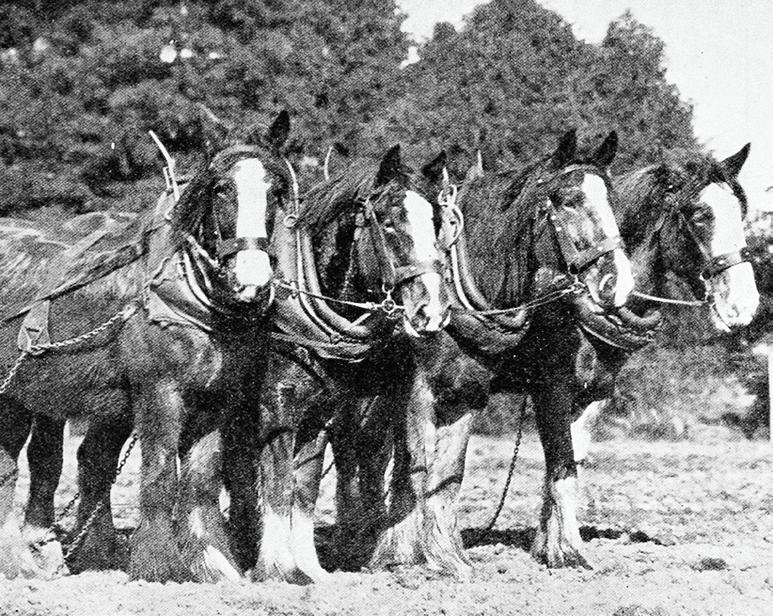 the first world war, a strong demand for the heavy draught breed remained, until economic recovery meant more farmers could afford a tractor to replace their horses. This image was captured in 1929 by the Auckland Weekly News at the former Ruakura State Farm of a Clydesdale team ready for ploughing work.