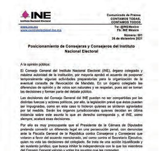 l Órgano Interno de Control (OIC) del Instituto Nacional Electoral (INE) inició un procedimiento de responsabilidades en contra de los consejeros electorales que votaron a favor de suspender la consulta de revocación de mandato en 2021, ante falta de recursos para llevar a cabo el ejercicio.