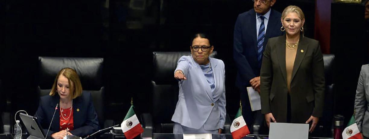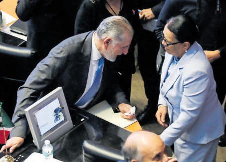 ● SENADO. Ante el pleno, la secretaria de Gobernación, Rosa Icela Rodríguez, lanzó la advertencia para aquellos que crucen la ley. “Y si alguien cruza la línea del cumplimiento de la ley, asumirá
