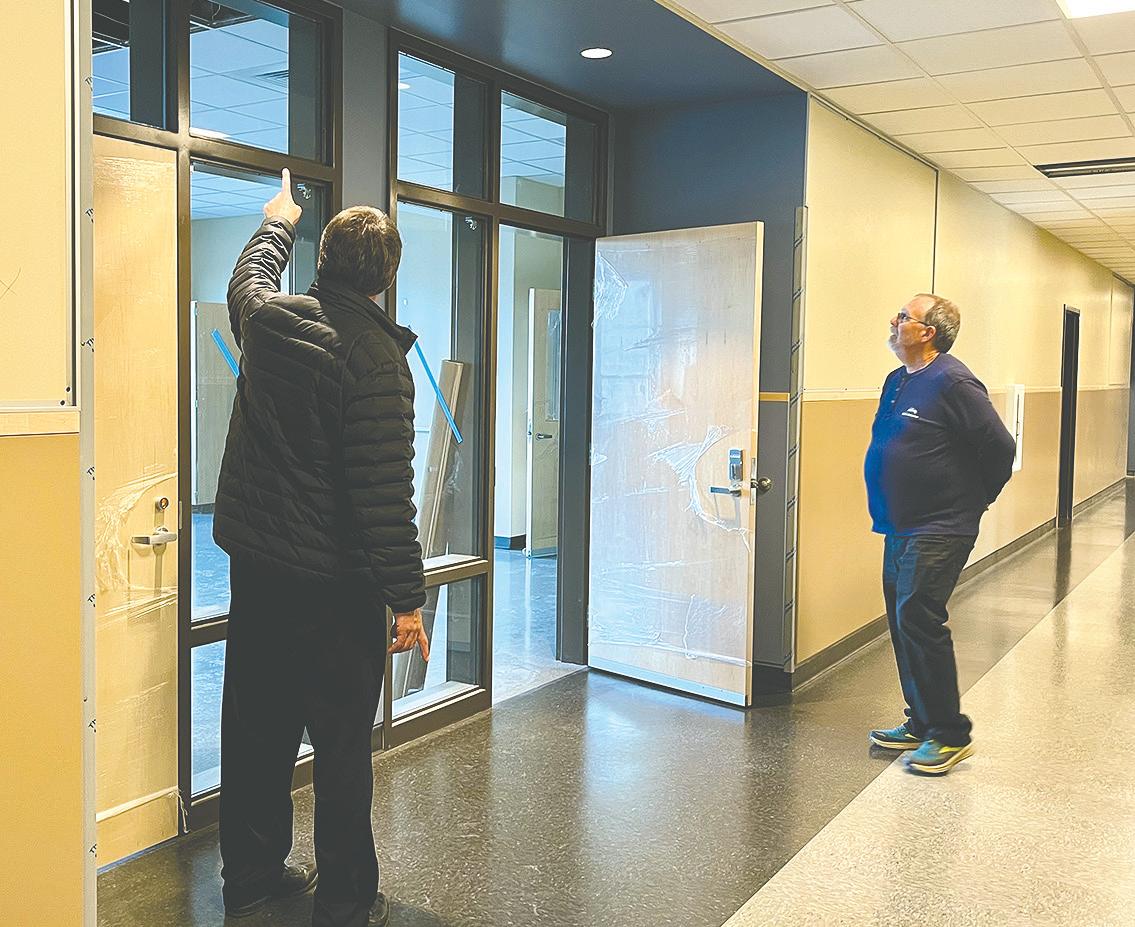The project is on time and on budget, though there have been some alterations due to increased construction costs. The gym is a little smaller than originally planned, and a planned rollup door to the outside of the library was scrapped in favor of a large window. However, the gym remains expansive, striped for activities ranging from dodgeball to pickleball, and capable of holding two physical education classes