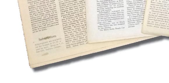 District; subscriptions are available outside delivery area. Third-class postage: one year, $70; six months (or less), $45. First-class postage: one year, $125 six months, $90. Published Weekly. ©2024 The Nugget Newspaper, LLC. All rights reserved. Reproduction in whole or in part without written permission is prohibited. All advertising which appears in The Nugget is the property of The Nugget and may not be used without explicit permission. The Nugget Newspaper, LLC. assumes no liability or responsibility for information contained in advertisements, articles, stories, lists, calendar etc. within this publication. All submissions to The Nugget Newspaper will be treated as unconditionally assigned for publication and copyrighting purposes and subject to The Nugget Newspaper’s unrestricted right to edit and comment editorially, that all rights are currently available, and that the material in no way infringes upon the rights of any person. The publisher assumes no responsibility for return or safety of artwork, photos, or manuscripts.