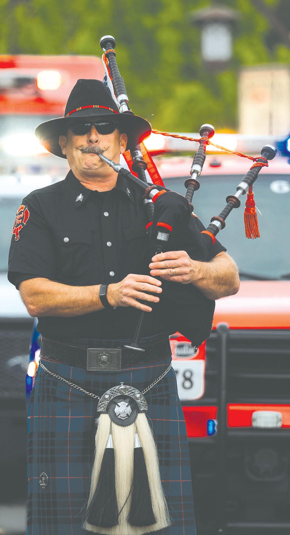 Bend Fire provided the skirl of bagpipes in the Sisters Rodeo Parade on Saturday.