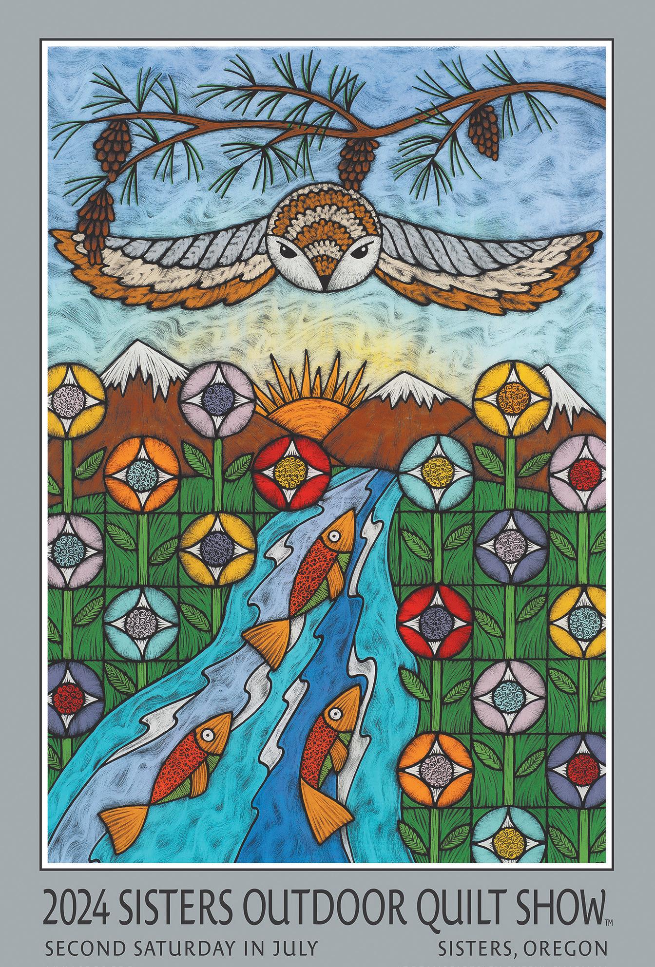 Chapman is exclusively represented in Sisters by Makin’ It Local at 281 W. Cascade Ave. Learn more about Chapman’s work at www.sillydogartglass.com. Posters may be ordered online at https://stitchinpost.com/ products/2024-soqs-posterdreamscapes-by-cherylchapman or purchased at the Quilt Show.