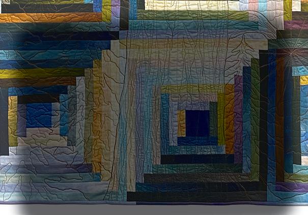 Her art, however, reflects their 39 years living in the Hawaiian Islands. Judy’s abstract quilts make use of bright colors, bold patterns, and high contrast. She loves Asian art after trips to Japan and Thailand. Many of her quilts have echoes of the Asian influence. She refers to her work as a “basket of mixed cultures.”