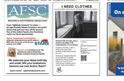 Your suppor t of The Nugget helps us suppor t local businesses. While our costs continue to rise, we have held steady on our adver tising rates because we know we can’t simply pass those cost burdens on to our adver tisers, who are facing rising costs across the board. Direct suppor t from readers in the form of Suppor ting Contributions is vital to continuing the work of the newspaper, which is, itself, a long-time par t of Sisters’ small business community R eaders who value the paper and make direct suppor ting contributions help us cover the cost of repor ting the news and serving as an opinion platform for the community You