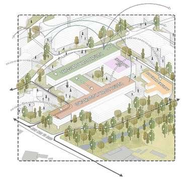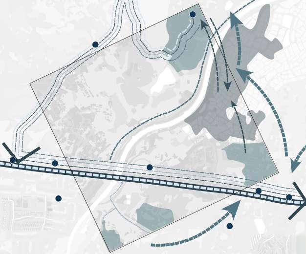 Strategy is to improve connectivity establish direct linkages between residential neighborhoods, the MTR station, and green infrastructure by transforming the canal corridor into a continuous pedestrian and cycling route that also integrates nature and transit. Create safe, seamless access points across barriers, ensuring all residents— including seniors and those with mobility challenges-can easily reach and enjoy the canal and railway-adjacent spaces. Repurpose existing infrastructuresuch as the pipe corridor-into elevated walkways and observation decks, offering scenic views and encouraging greater public interaction.