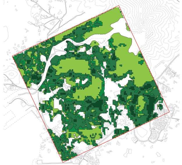 Moderate Euclidean Nearest Neighbour (ENN) value of green spaces insite 4