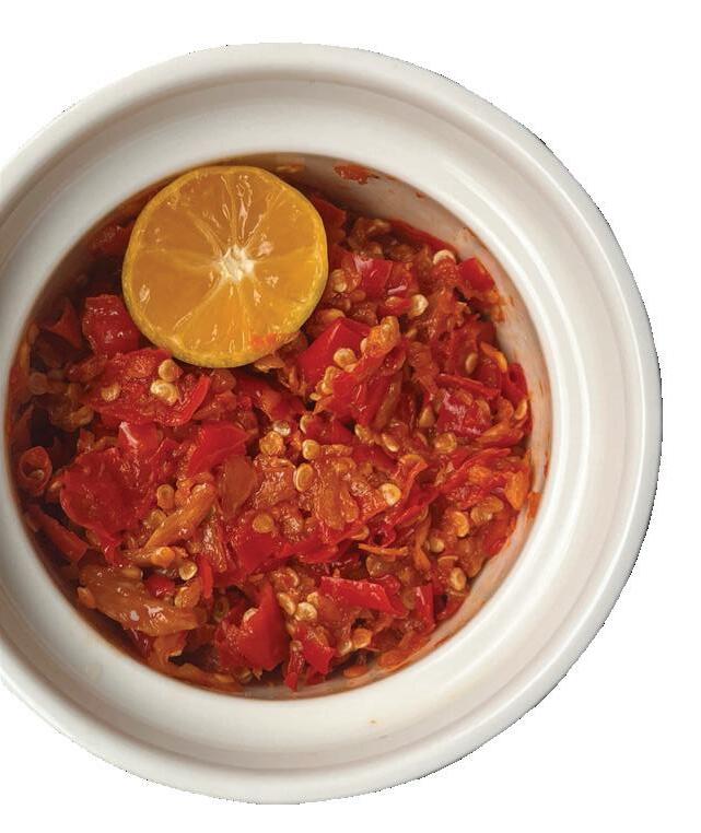 WHILE I’VE SHARED my recommended pairings for each sambal, feel free to experiment — there are no rules! If you’re unsure about the spice level, try using fewer chilis or deseeding them, as most of the heat is concentrated there. And, just between us, a sprinkle of MSGlaced chicken stock powder can give your sambal that extra kick. Enjoy!