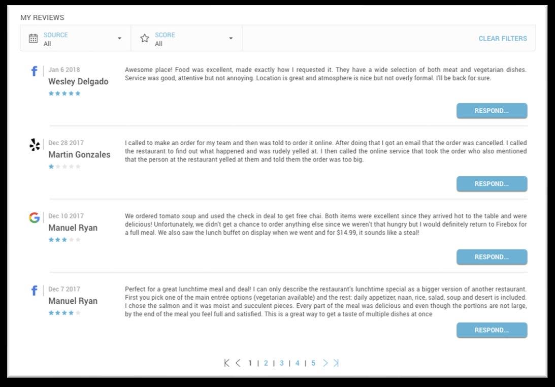 • Access reviews and social media ratings all in one dashboard