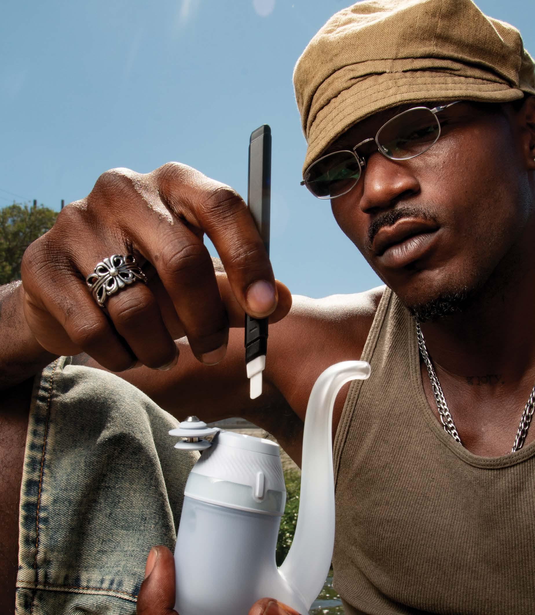 With a new price point, Bluetooth capability, redesigned 3D chamber, adjustable temperatures and a sleek Sherlock-style profile, the New Proxy bridges the gap between a next-gen and entry-level device. While the base is in the aesthetic style of their Puffco Peak model, this features a thicker, redeveloped glass housing for the pipe, bubbler and wizard experience. The New Proxy has all the bells and whistles you’d expect from your Peak Pro, including an app feature that lets you upload photos and create color profiles from the blue of the ocean or the green of a desert cactus. Northeast Leaf’s ADHDDead said it best when he reported that the “Puffco’s Proxy 2 feels like another major shift in how we think about portable concentrate rigs.” PUFFCO.COM @PUFFCO | $250