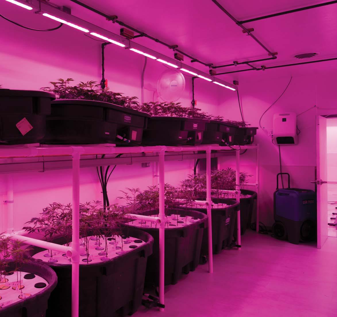 Operating solely on LEDs, the processes utilized for horticulture at this facility do not rely on soil. From a plant’s careful propagation to harvest, the root zone is misted with a blend of nutrients and water that is purified on-site and pH-controlled. That water is monitored by a complex network to provide the prime blend of oxygen and nutrients that are suited for each strain of Cannabis Redbird brings to life. Due to the readily available uptake provided by the high-pressure aeroponics, every 200 to 300 seconds, the suspended roots are misted for 1 to 2 seconds, depending on various metrics. The difference between this process and the low-pressure aeroponics systems of the past is night and day.