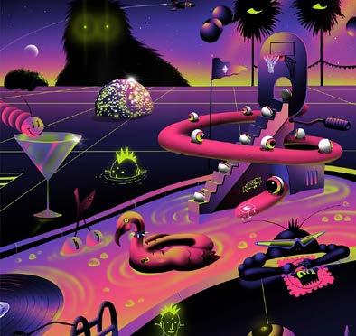 Hailing from Indonesia, Ilham is a prolific illustrator and commercial artist known for his trippy and hyperfuturistic style, whose work has been commissioned by national brands and touring musicians for over a decade. Leaf COO Tom Bowers created the concept of a dab bar set in a Blade Runner scene (cue the noodle slurp), and Ilham brought home the neon vision with abundant stoner details. For even more of his art, be sure to check out our profile in this month's Studio Sessions column from Leaf contributor Matt Jackson, pg. 54-55.