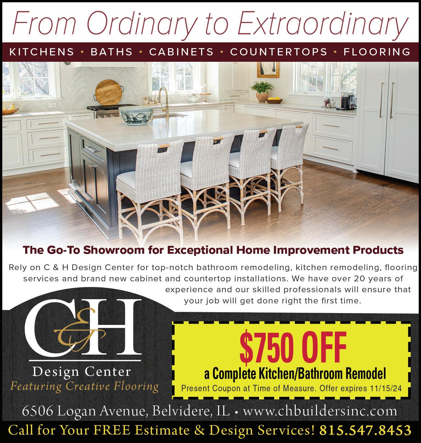For more information about K&H products or to schedule a free consultation for home improvement, call (815) 637-6946 or visit the showroom at 5257 Swanson Road in Roscoe. ❚