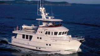NAVIGATOR 2001 - 2 staterooms, allowing bigger heads in master & VIP. Desirable cherry interior, wood floor in pilothouse. Contact Vic Parcells.