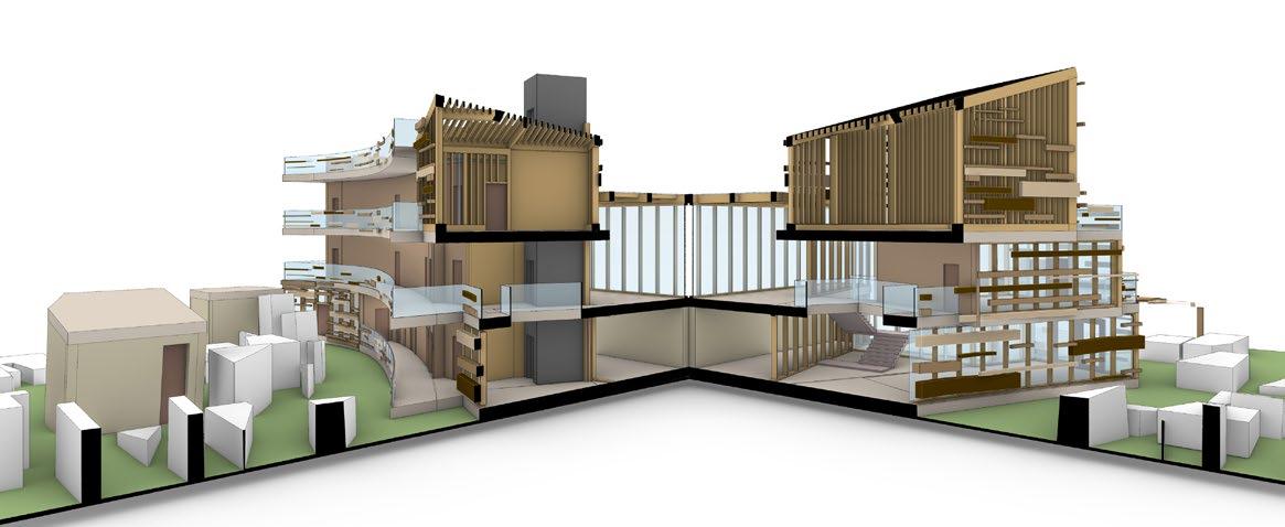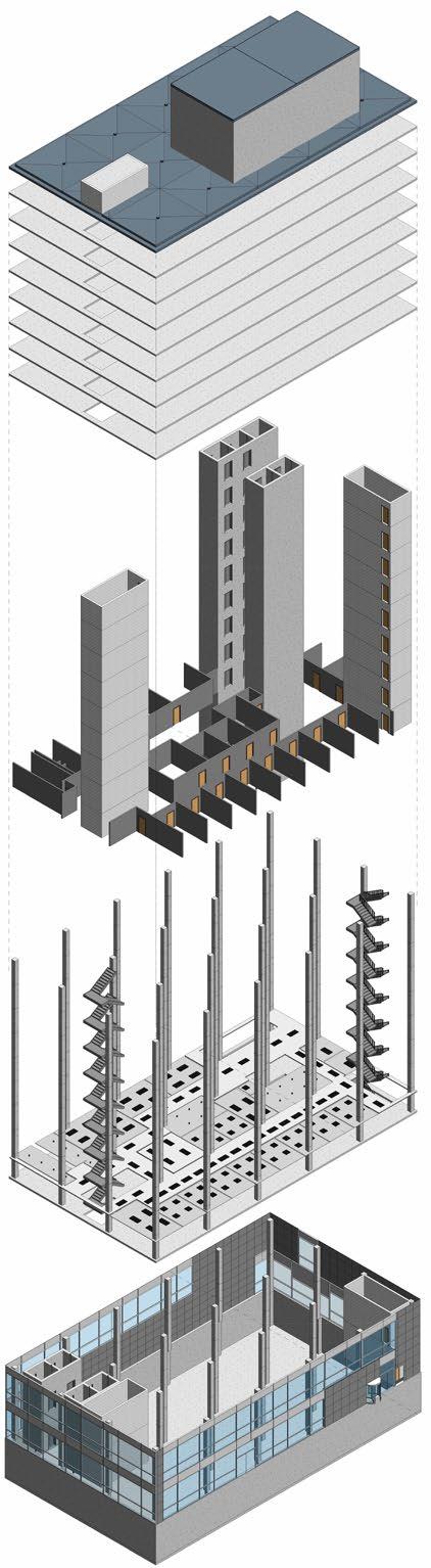 The course focuses on the student’s mastering of the structures curriculum through an integrated design problem incorporating the fundamental materials of wood, steel and concrete into a single building structural package. The package includes all drawings, details and calculations to resolve a simple building with a long-span structure.