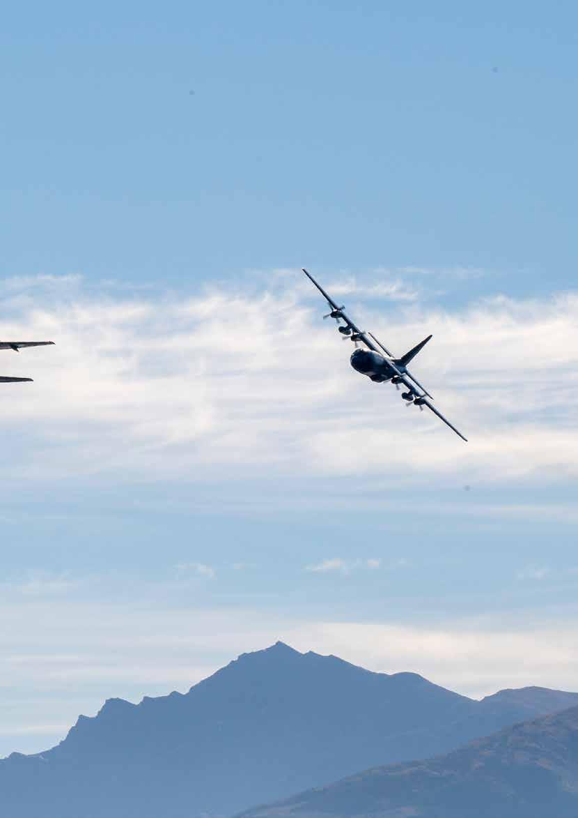 In 2020 the New Zealand Government signed a $1.5 billion deal for the C-130J fleet. The aircraft have a 40.41m wingspan, are 34.4m long, have a top speed of 330 knots and can carry a maximum of 21 tonnes. They are designed to operate from short or unprepared airstrips.