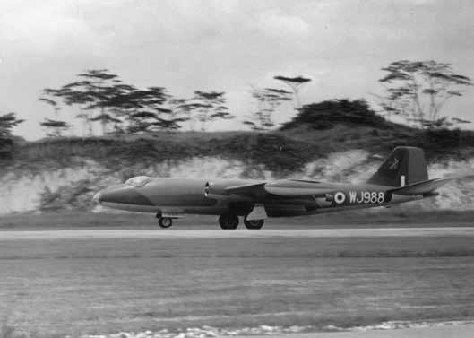 No. 75 Squadron Canberra WJ988 landing at RAF Station Tengah after the first bombing strike by the squadron