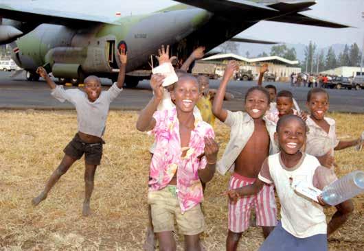 Flights into Bukavu proved easier and were as vital, given nearly 400,000 people were sheltering around the town. The Air Force aid to Bukavu was especially timely, as WGCDR Lintott reported: “Our flight was the first food they’d had delivered in a week, so they were pretty desperate and pleased to see us.”