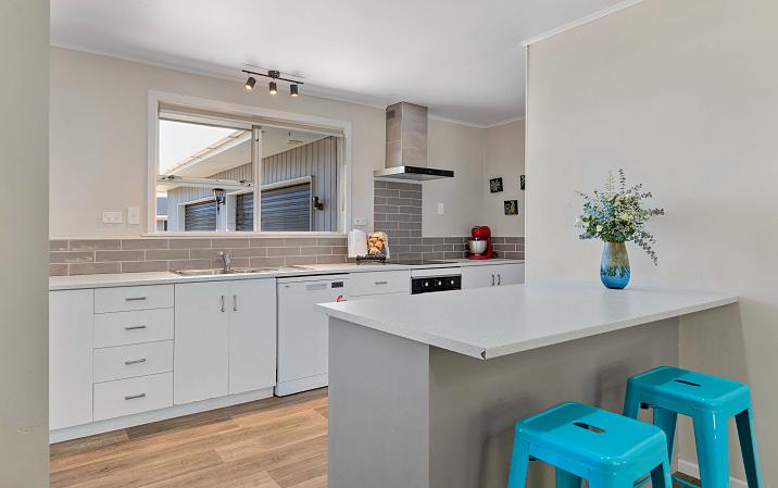 Creating a fantastic indoor/outdoor flow, expansive stacker doors open out to a wonderful entertaining space from the north-facing living area. Raked ceilings lend the home an airy spaciousness, and a large picture window in the beautifully open-planned kitchen brings the outdoors inside.