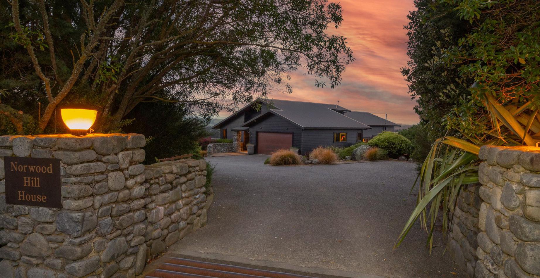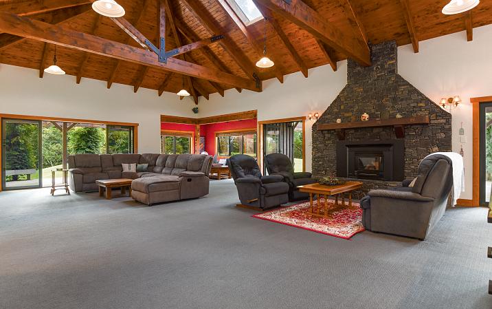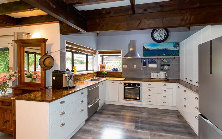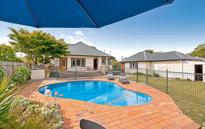 “Queenslander” brick house (floor area 300 sqm), built 1993, 2.7m high stud, rimu joinery, upgraded kitchen (with granite benchtops), separate formal lounge. Four double bedrooms, extra-large walk-in wardrobe, family bathroom (with luxurious tiled shower, toilet and bespoke rimu vanity unit), second bathroom, separate toilet, wood-burner, HRV, mobile broadband.