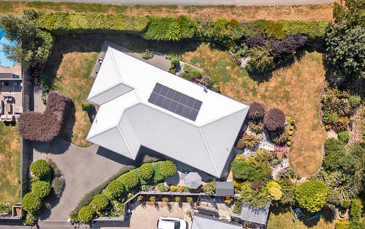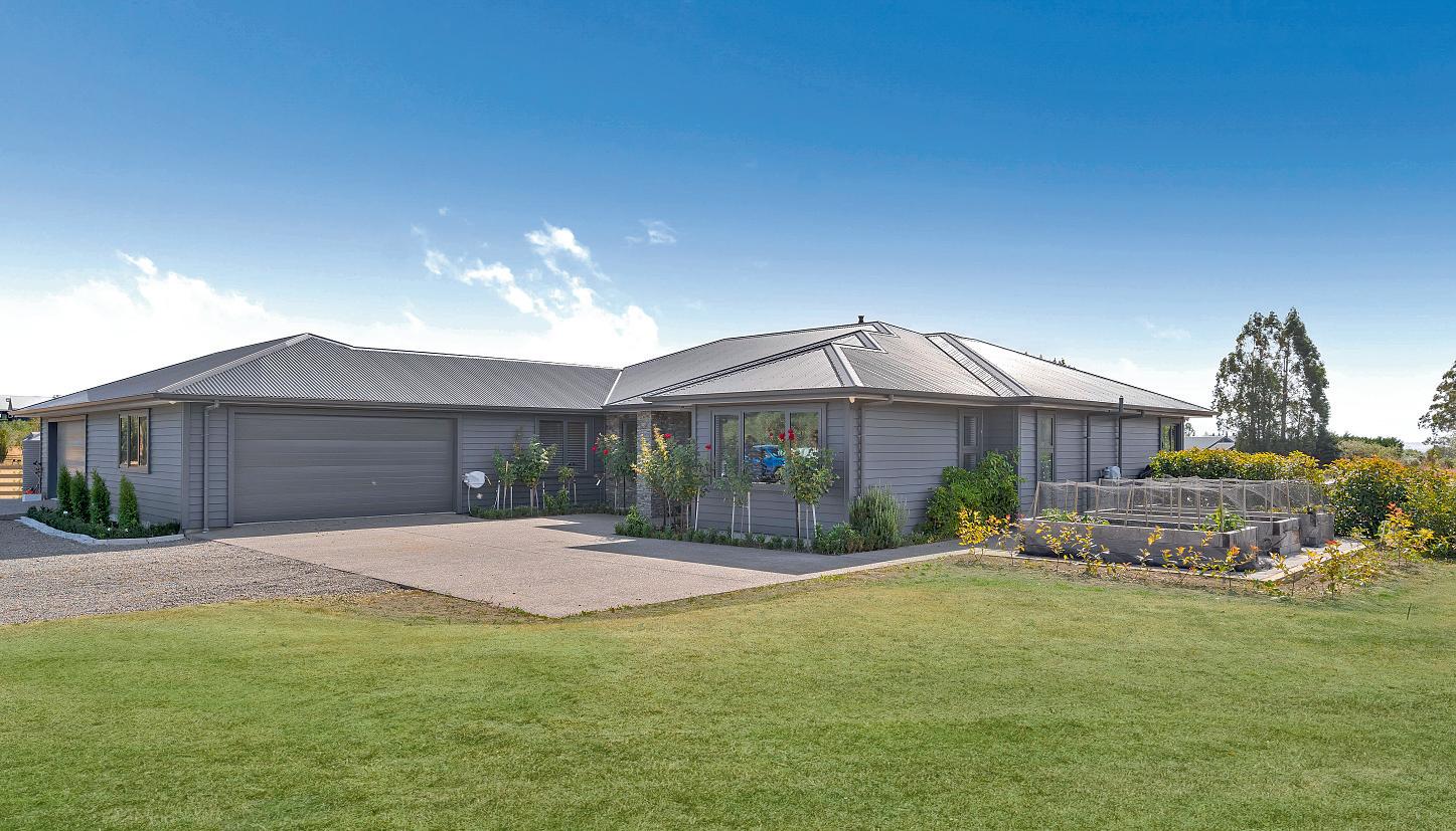 Constructed with plaster over a cavity system and weatherboard, the house is fully insulated, double glazed, and warmed by heat pumps as well as underfloor heating in the tiled areas. The exterior is completed with an established fully fenced garden and complemented by fruit trees and raised vegetable beds.