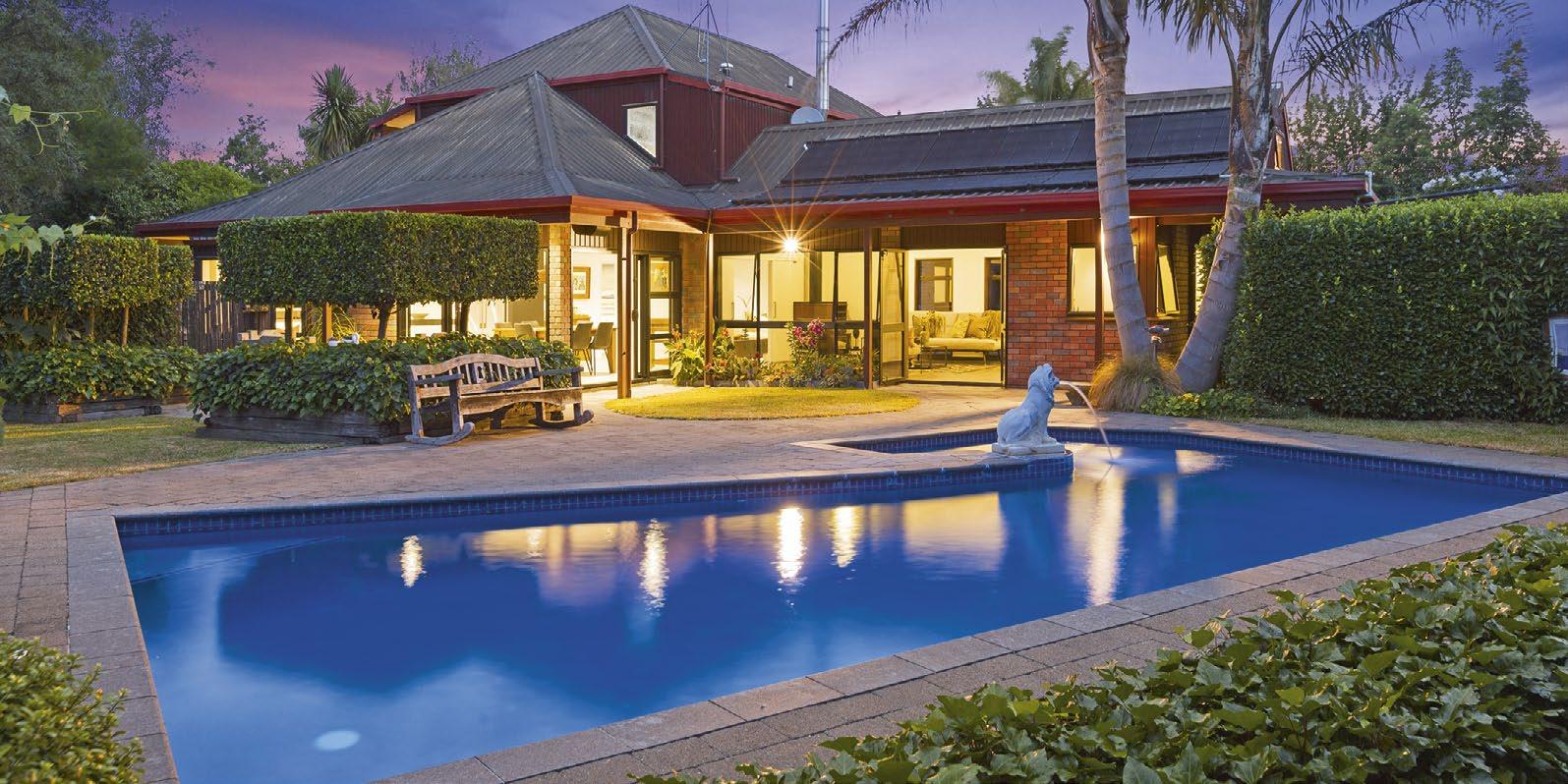 Peaceful and private, and offering a privileged lifestyle handy to Hamilton and Cambridge, this 1.3ha property has it all, including a recently part renovated brick and cedar home and a resortlike environment with rec rooms indoors and a solar heated pool, tennis court and inviting alfresco niches outdoors. Family and guests are well accommodated, there’s room for pets and excellent school zones.