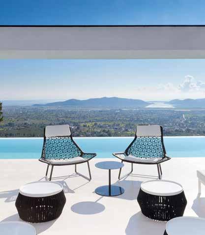 Rechts: Als Insel des Glücks zeigt sich diese grosszügige Gartenanlage von Luigi Ondate. Holzstuhl aus Esche unten links: Topfpflanzen brauchen ihren Platz: Edles Gestell aus Aluminium