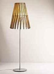 «Stick»: Matali Crasset hatdie dezente Stehleuchte miteinem Lampenschirmaus speziellgeformten Holzstäben entworfen. Sie hatdafür Ayous-Holz gewählt, das aufgrund seinerWeichheit üblicherweise alsSperrholz fürden Innenausbaugenutzt wird.Die Designerinhat damit derLeuchte eine fast durchscheinend wirkende Leichtigkeit verliehen. Fabbian �www.fabbian.com