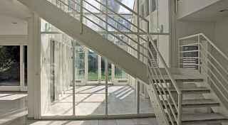 Welch einKontrast, dendie Neubautenzuden Herrschaftsvillen undTerrassenhäusernimnahen Umfeld darstellen! Dies liegtnichtalleinander formalen, modernen Architektursprache, dieeineklareDifferenzierung zu denNachbargrundstücken ausdrückt, sondern auch an ihrergeringen Höhe.