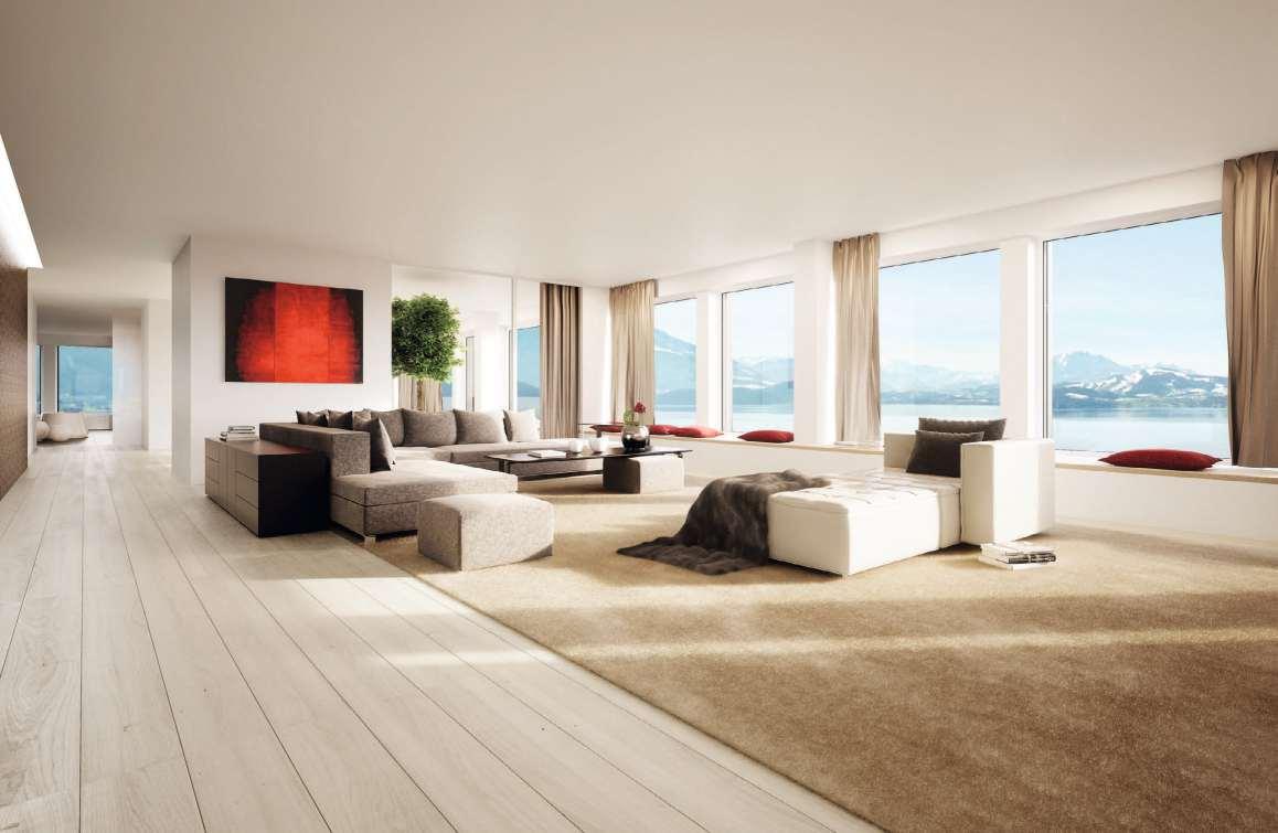 Mitseinen3-D-Effekten undden Lichtreflexen verändert derseidenartige Teppich «Silence» dieStimmungimRaum je nach Tageszeit.