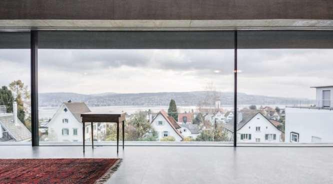 Air-lux: DerOstschweizerMetallbauspezialist KrapfAGhat einbodenunddeckenbündigesGlasfassadensystem mitgrossflächigenSchiebefenstern undeinem speziellen Dichtungskonzept entwickelt,das Glasflächen bis18Quadratmeter erlaubt �www.air-lux.ch