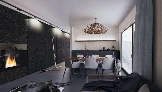 Angesprochenauf dieWandfarben,sagt dieBauherrin:«Diese Schlammfarbengefallenuns sehr, denArchitekten übrigens auch.» An düsteren Tagenbrenne zwar viel Licht, doch es sei sehrgemütlich. BeiTag im Sommer wieauch im Winter mitSchnee seiendie dunklenWände einwunderschönerKontrast. Möbelund farbigeElemente kommen anders zurGeltung alsineinem weissenInnenraum.Für dieArchitekten,die nach derFertigstellungihr Werk immerein Stück weit loslassenmüssen,stimmtdie sehr persönliche Möblierung des Hauses.«Die architektonische Hülleist neutral und zurückhaltend, weshalbviele Stile hineinpassen», so GaniTurunc. JennyKeller