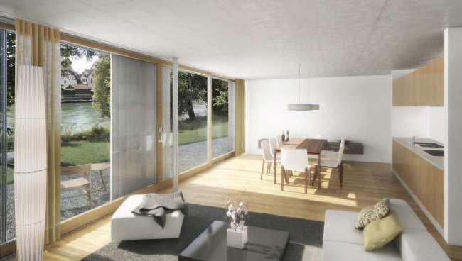 Unten: VomEsszimmer aus überblickt man Garten und Reuss.