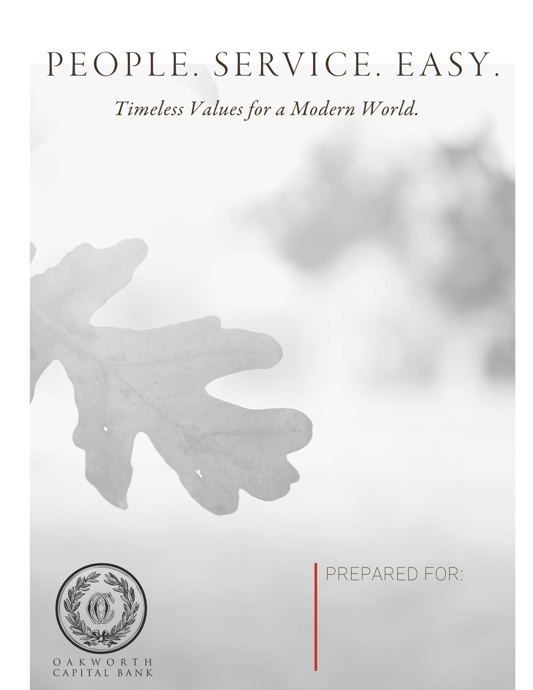 We trust the contents of this proposal are to your liking and add value. We are excited for the opportunity of earning your business and hope to show you the best part of Oakworth Capital – being a client