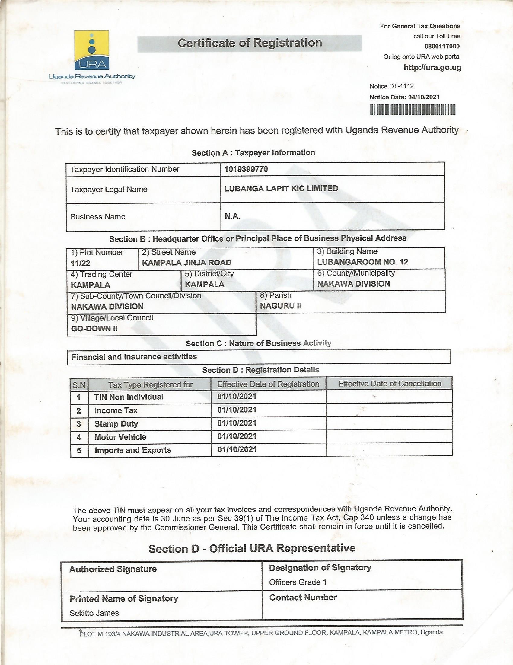 LUBANGA LAPIT KIC LIMITED BY GUA (LIMITED GUARANTEE) INCORPORATED