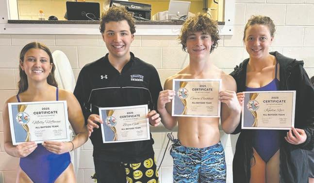 Stephen Decatur’s varsity swimming team competed last weekend in the Bayside Championships. The girls team finished up in second place in the conference. Named to the AllBayside team were, above from left, Molly Hoffman, Kaolin Riser, Bryce Gill and Gavin Buchheit. Individually, Kendal Bagley was named as Bayside champion in the 500 Freestyle; Kaolin Riser, Vienna Williams, Emma Walsh and Kendall Bagley finished as back-to-back Bayside champions in the 200 Freestyle Relay; Ewan Betz was Bayside runner-up in the 200 individual medley; Kate Wanner was Bayside runner-up in the 100 freestyle; Jake Harner, Bayside runner-up in the 500 Freestyle; Vincent Schicchi, Bayside runner-up in the 100 Backstroke; and Olivia Mongelli, Zoe David, Kendall Bagley, and Kate Wanner, Bayside runner-up in the 400 freestyle relay.
