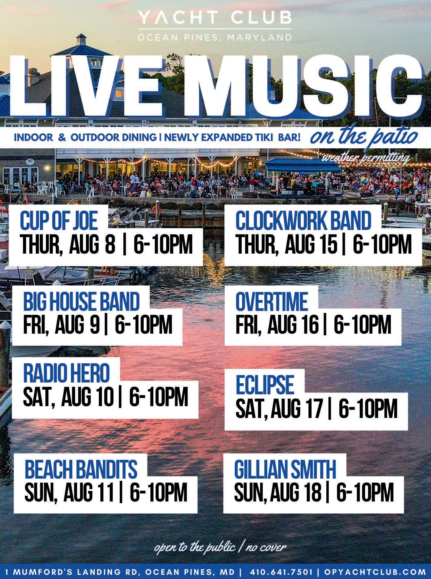 The concert is the second to last Sunday concert hosted by the Taylor House this summer. On September 8, Berlin and Worcester County citizens can close the season with an 80s-style party with music from the band Full Circle. Attendees are encouraged to dress on the theme for the retro occasion.