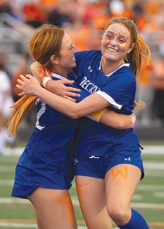 Seahawks Maddie Bell and Maddy Tapley charge down the field during Stephen Decatur’s game Monday against North Caroline.